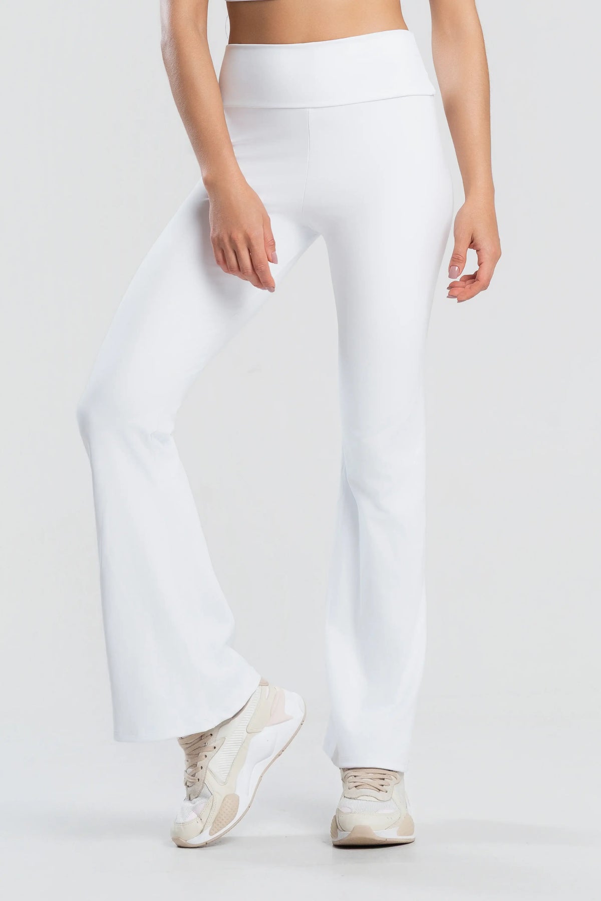 Conjunto Legging Flare + Cropped Essentials | Branco