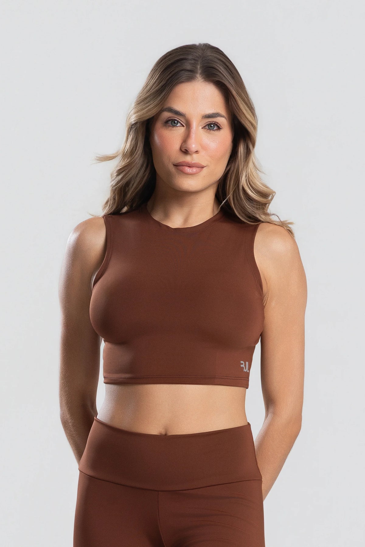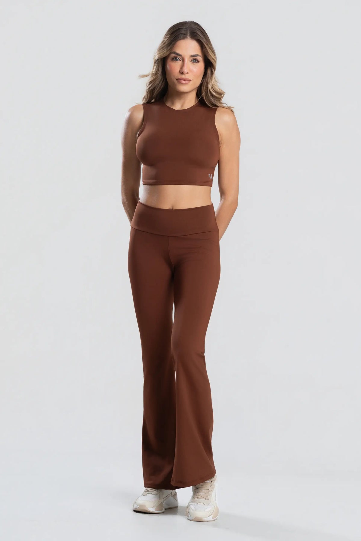 Conjunto Legging Flare + Cropped Essentials | Coffee