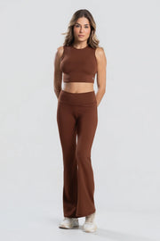 Conjunto Legging Flare + Cropped Essentials | Coffee - P